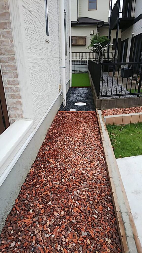 東京都江東区|狭小通路を快適動線に一新!雑草・ぬかるみを解消する砂利敷きリフォーム